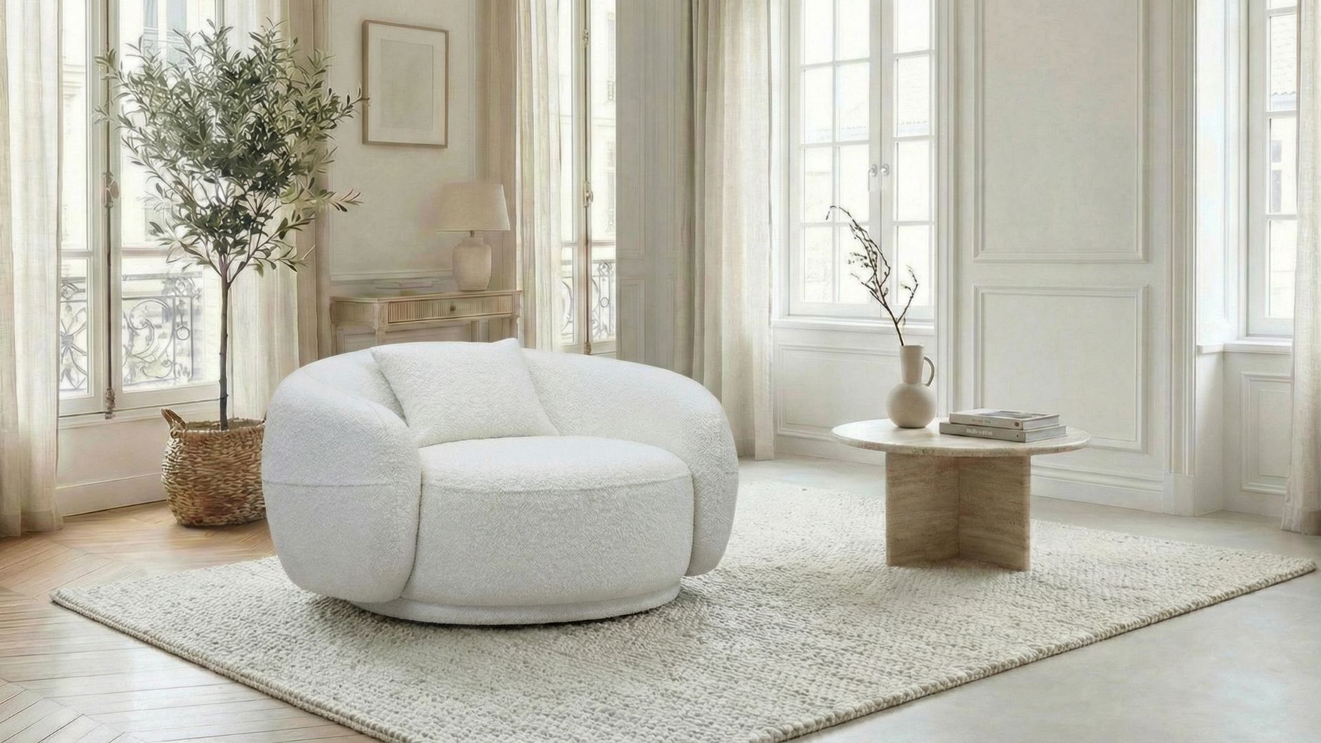 Fauteuil tissu bouclette beige