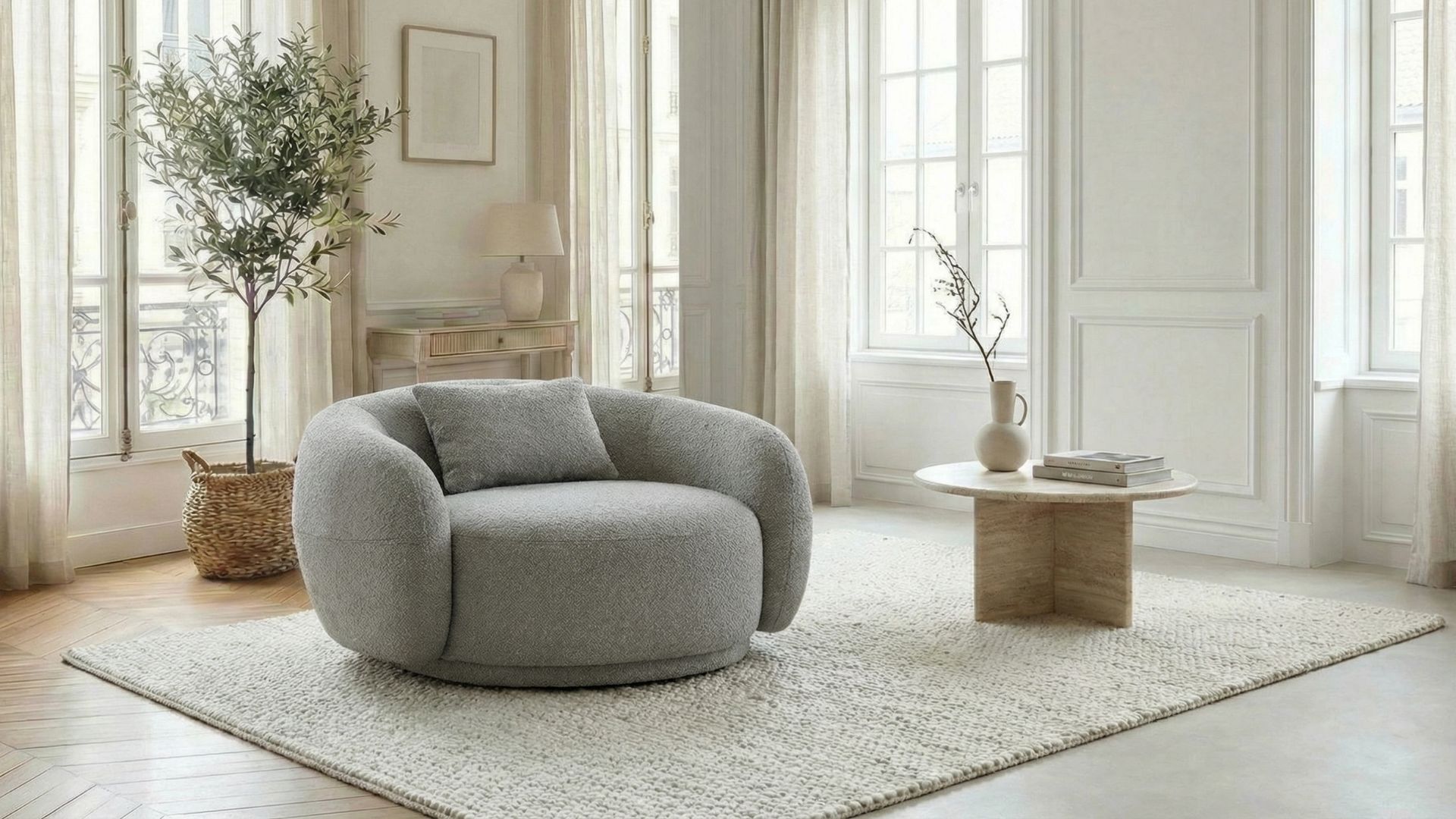 Son revêtement texturé premium gris met en valeur la pureté de ses volumes et souligne le caractère contemporain du fauteuil. Pensé pour les salons lumineux et les espaces de vie élégants, le fauteuil Harmonie Gris devient une pièce forte de la décoration tout en conservant une atmosphère douce et harmonieuse.